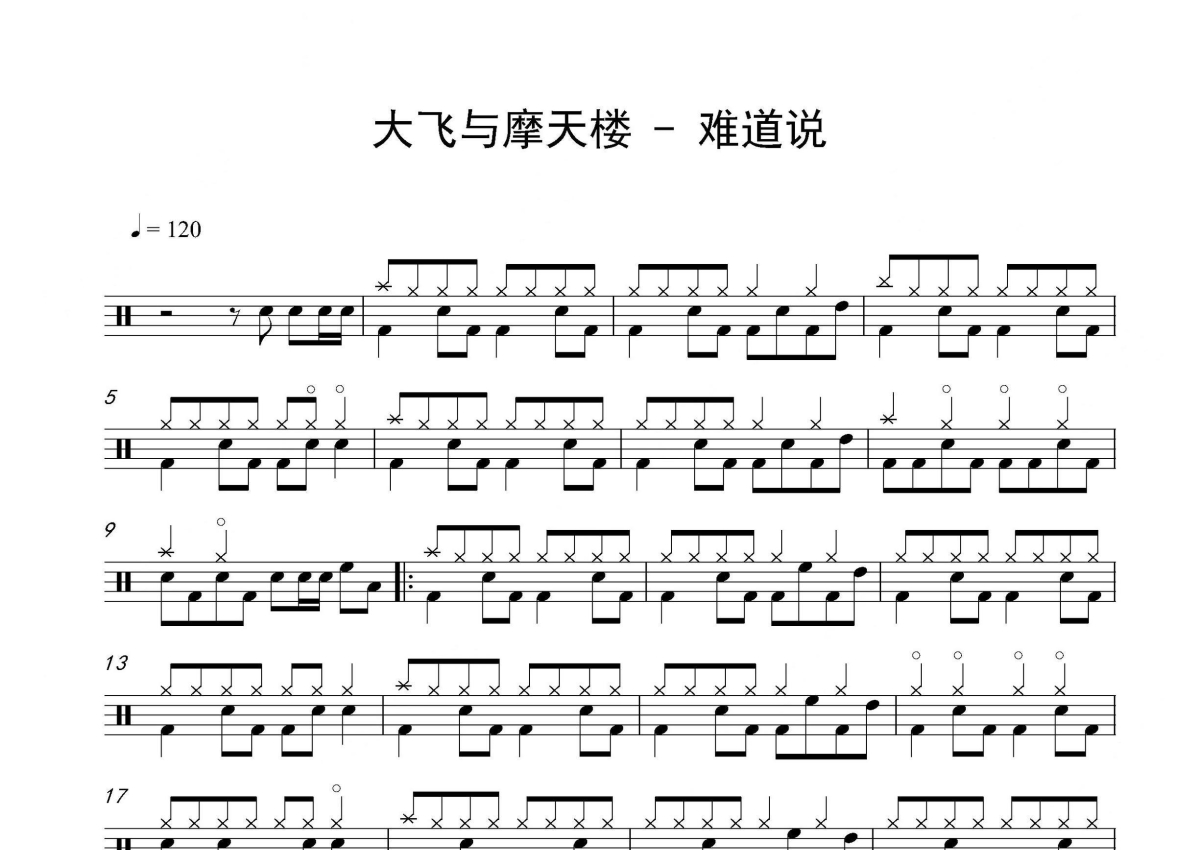 大飞与摩天楼《难道说》架子鼓谱