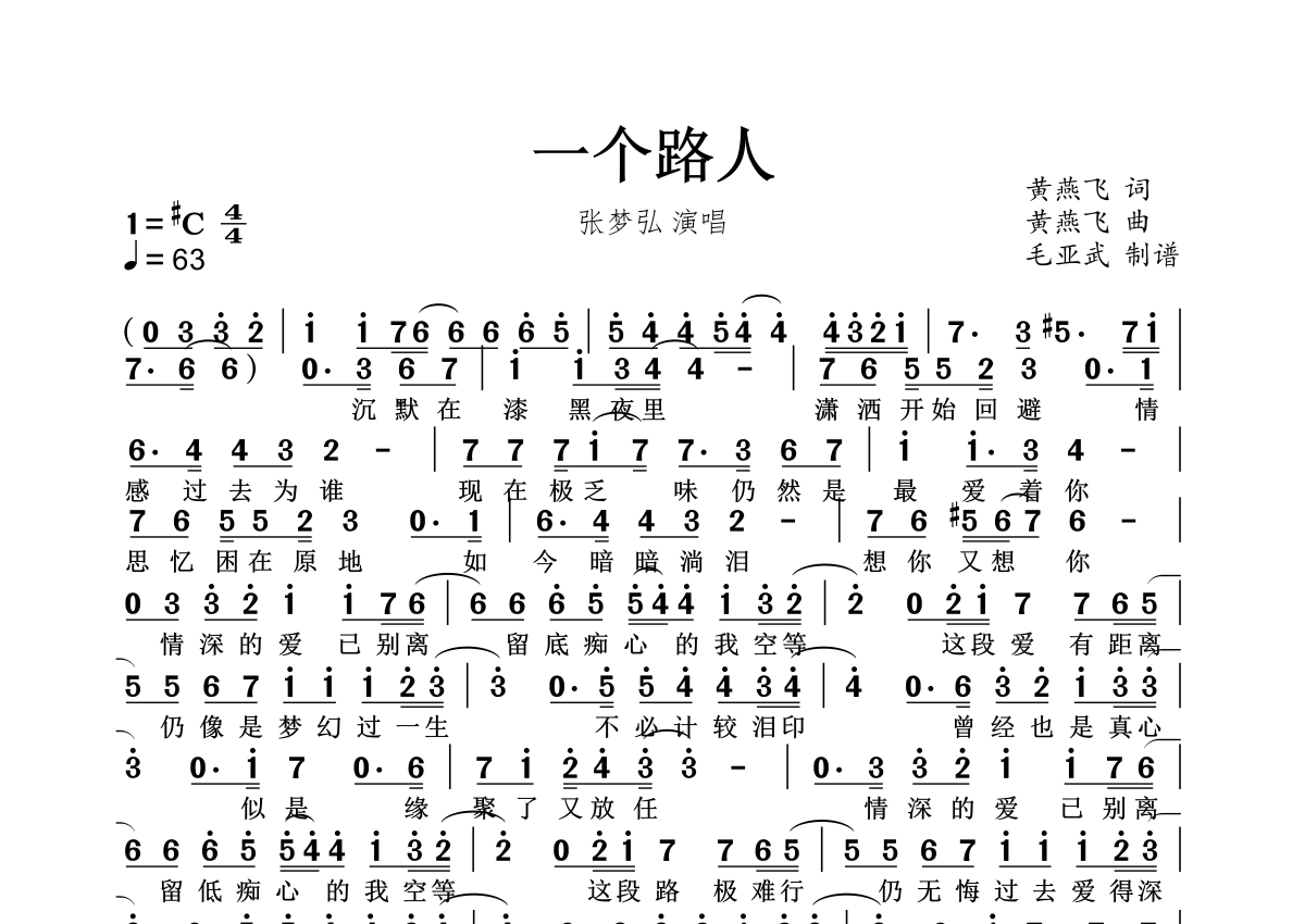《一个路人》是张梦弘演唱的一首歌曲,拍号为4/4拍,这份简谱共有一张高清图谱,图谱由 @秋天的童话 编配上传。