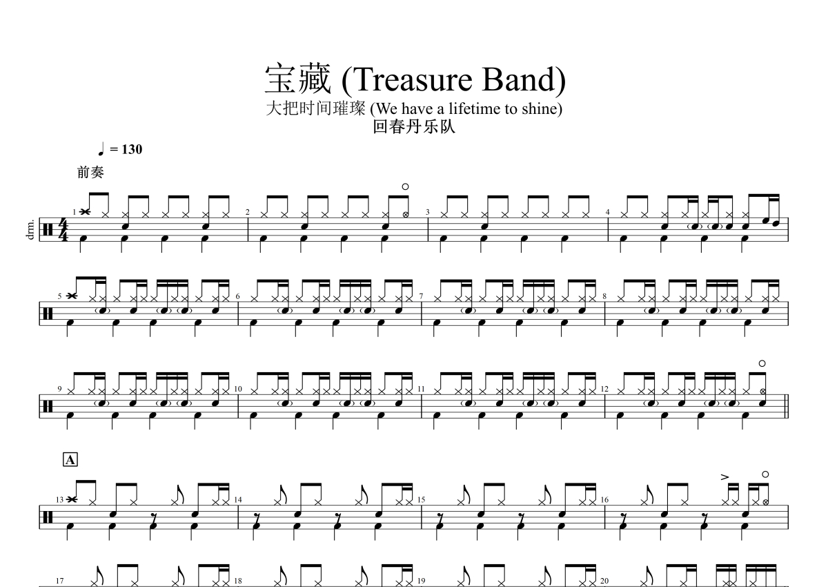 回春丹乐队《宝藏 (Treasure Band)》架子鼓谱