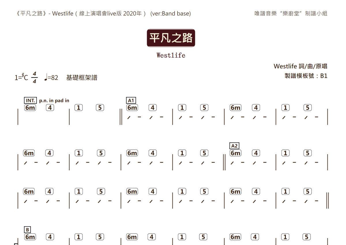 Westlife《平凡之路(网络live版)》乐队总谱 - 框架功能谱