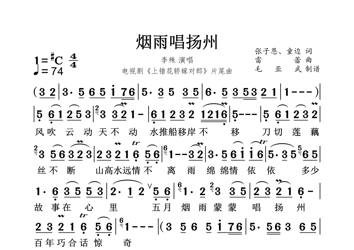 《烟雨唱扬州》简谱 - 李殊