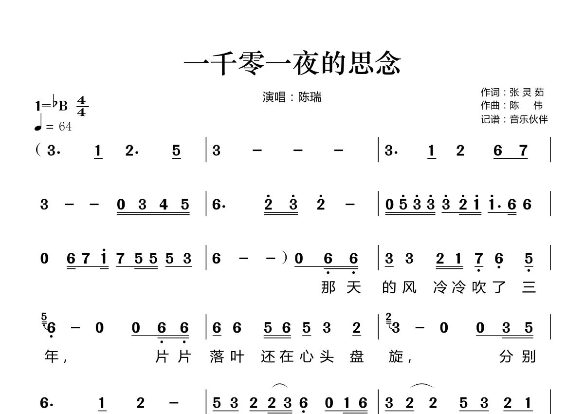 一千零一夜的思念简谱 - 陈瑞演唱