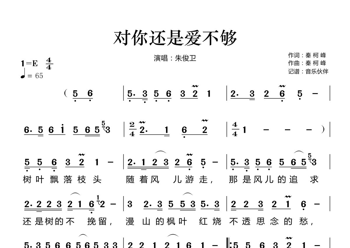 《对你还是爱不够》是朱俊卫演唱的一首歌曲,拍号为4/4拍,歌曲速度为每分钟65拍,这份简谱共有两张高清图谱,图谱由 @音乐伙伴 编配上传。