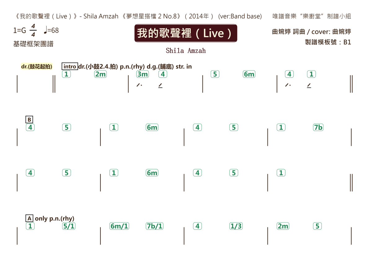 Shila Amzah(西拉)《我的歌声里(Live)》乐队总谱 - 框架功能谱