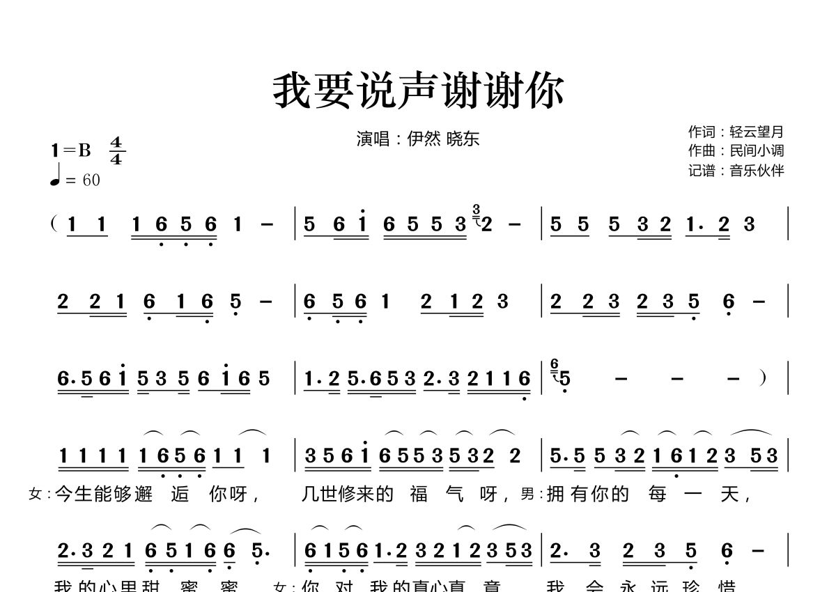 我要说声谢谢你简谱 - 伊然 晓东演唱