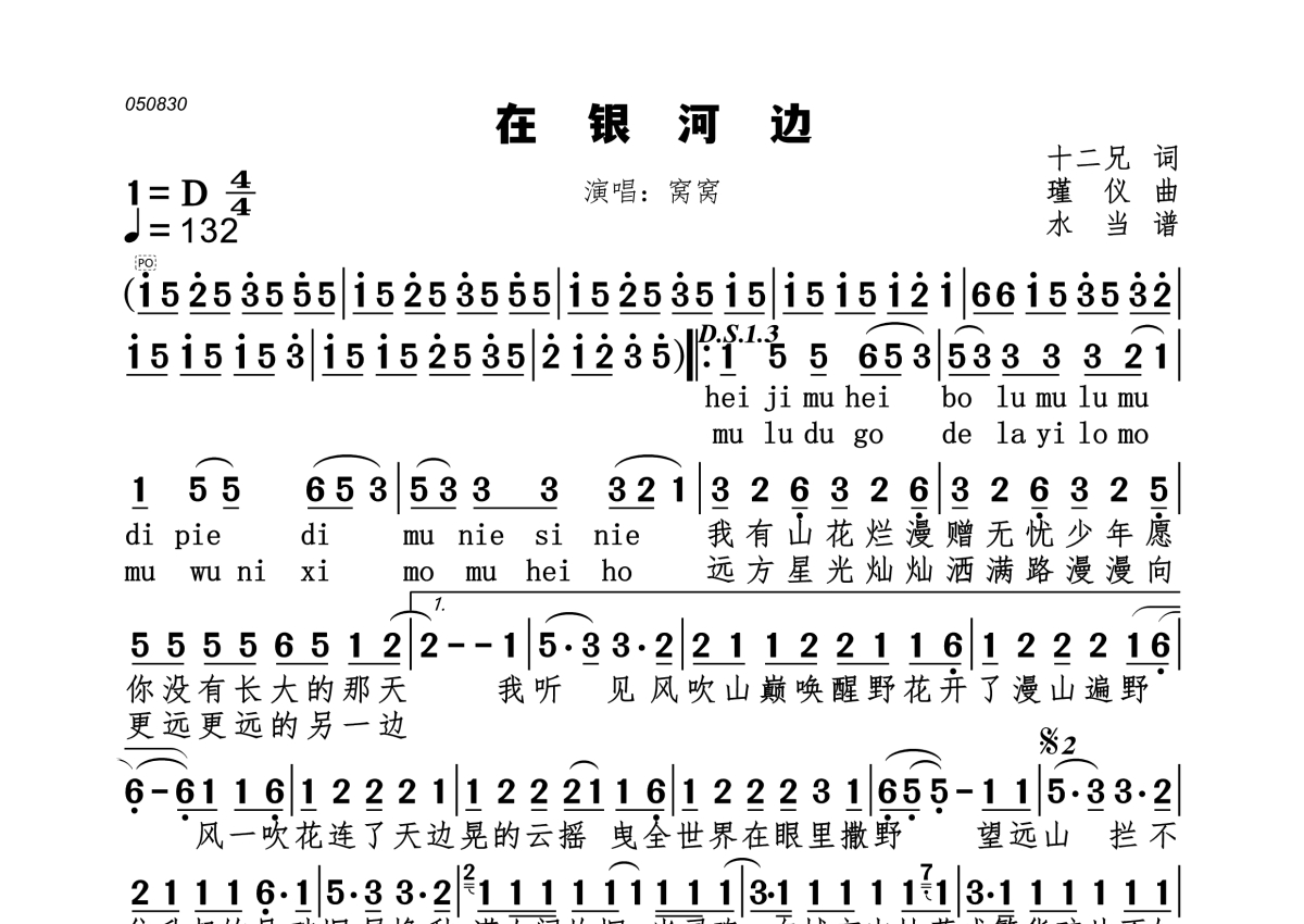《在银河边》是窝窝演唱的一首歌曲,歌曲速度为每分钟132拍,这份简谱共有一张高清图谱,图谱由 @水当 编配上传。