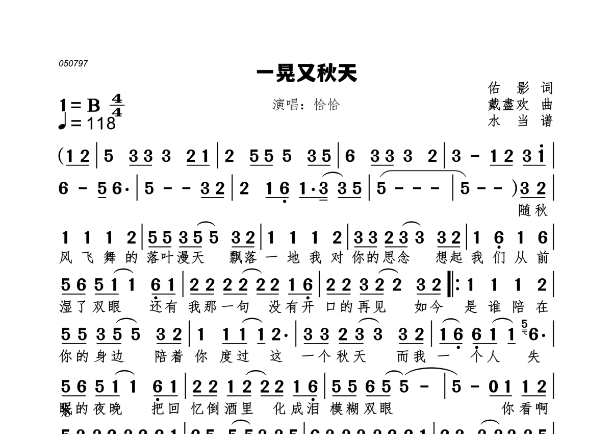 一晃又秋天简谱 - 恰恰恰恰恰演唱
