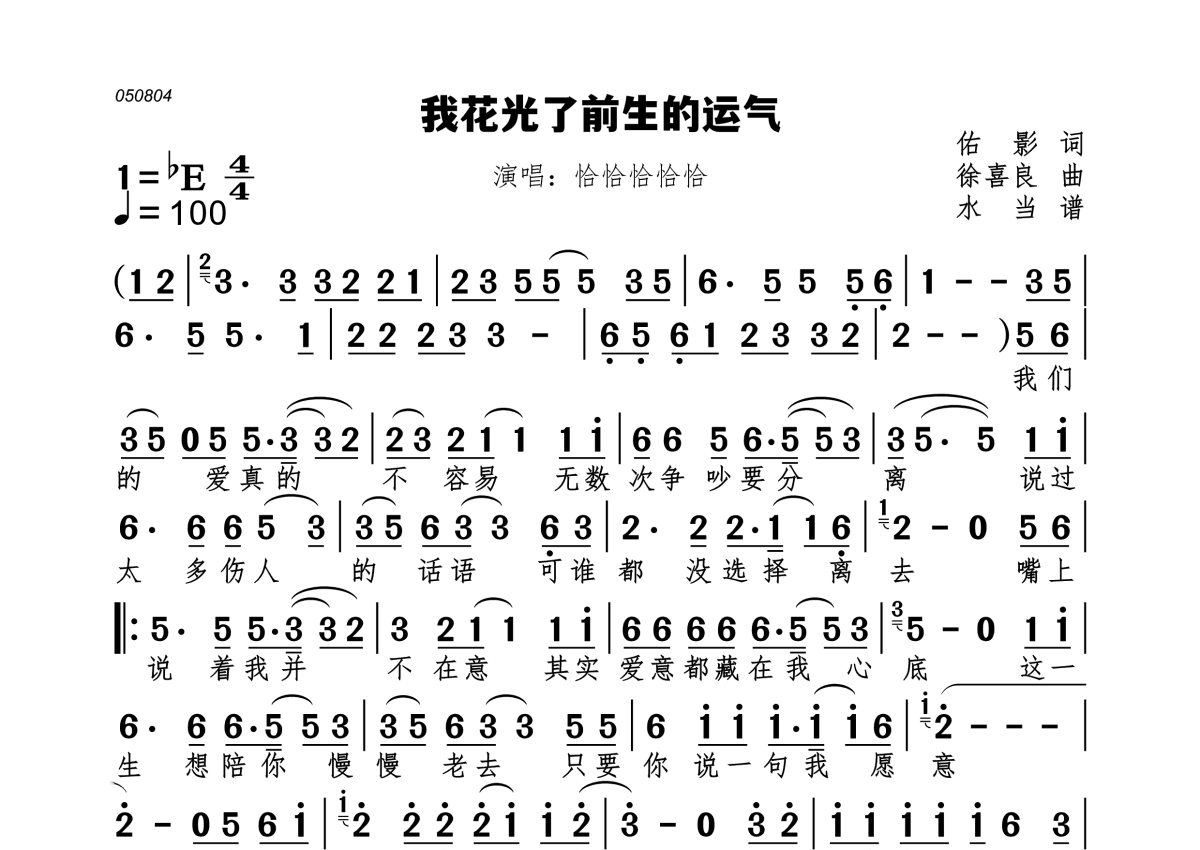 我花光了前生的运气简谱 - 恰恰恰恰恰演唱