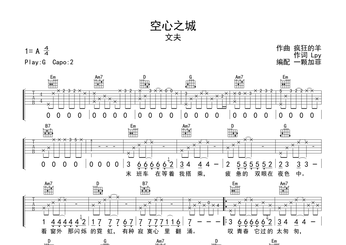 文夫《空心之城》吉他谱 - G调弹唱六线谱