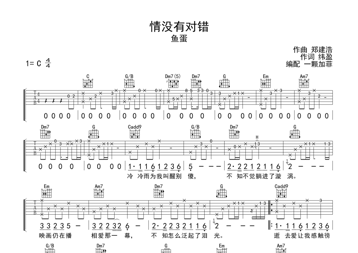 《情没有对错》吉他谱 - 鱼蛋 - C调弹唱六线谱