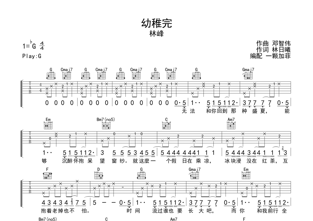 林峰《幼稚完》吉他谱 - G调弹唱六线谱