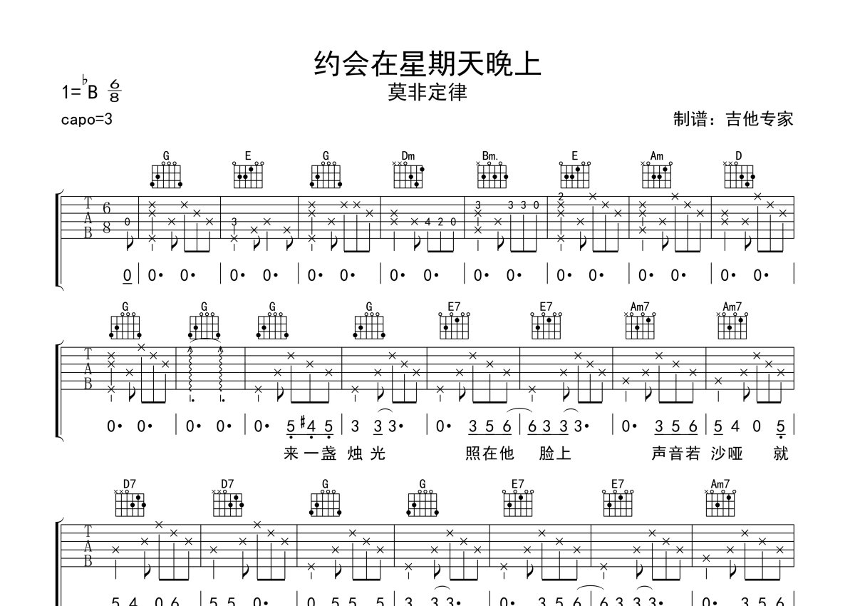 莫非定律《约会在星期天晚上》吉他谱 - G调弹唱六线谱
