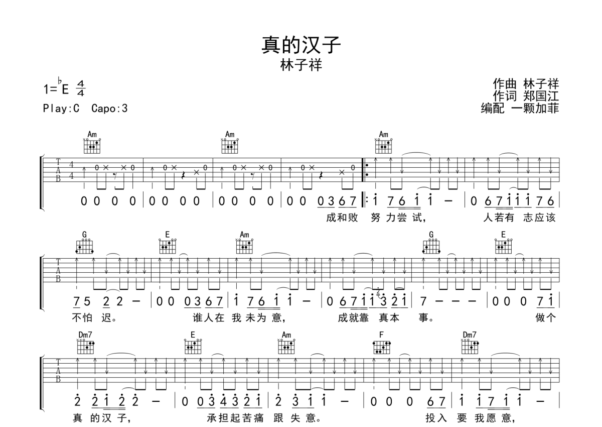 真的汉子吉他谱 - 林子祥演唱 - C调弹唱六线谱