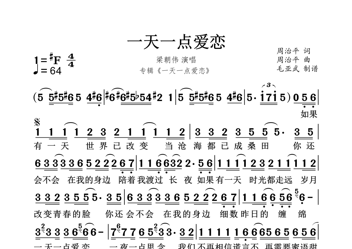 《一天一点爱恋》是梁朝伟演唱的一首歌曲,这份简谱共有一张高清图谱,图谱由 @秋天的童话 编配上传。