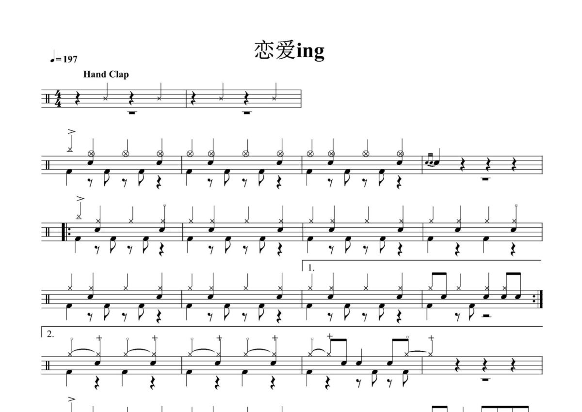 《恋爱ing》是五月天演唱的一首歌曲,拍号为4/4拍,歌曲速度为每分钟197拍,这份架子鼓谱共有四张高清图谱,图谱由 @音符喷血者 编配上传,图谱使用五线谱编配,使用这份恋爱ing架子鼓谱,你将能够轻松地敲打出这首五月天的恋爱ing,快来尝试吧。