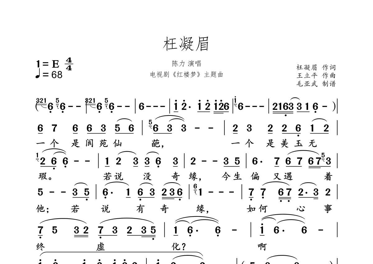《枉凝眉》是陈力演唱的一首歌曲,这份简谱共有一张高清图谱,图谱由 @秋天的童话 编配上传。