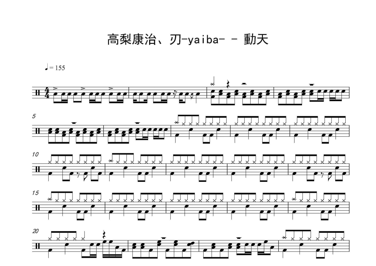 高梨康治、刃-yaiba《動天》架子鼓谱