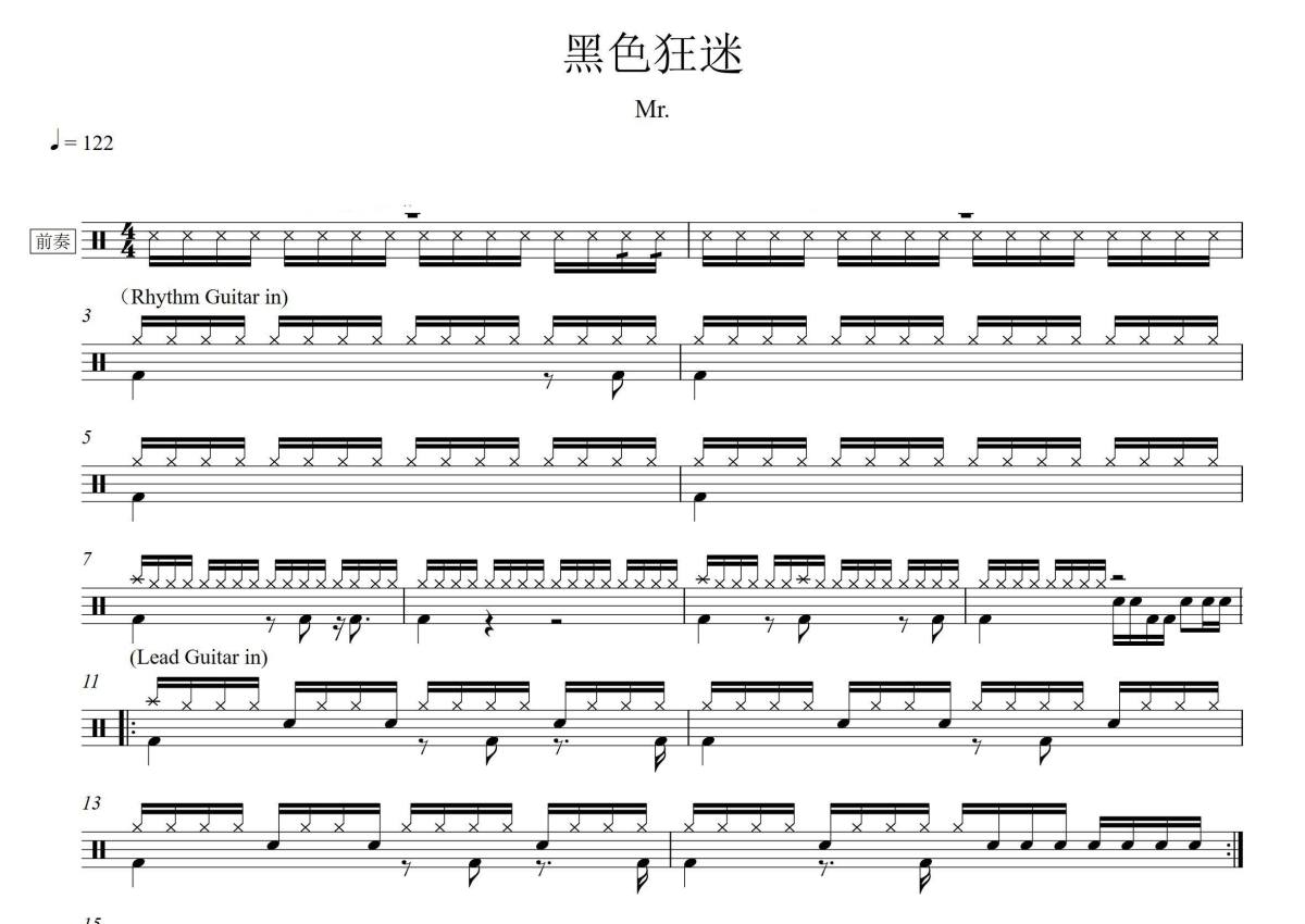 《黑色狂迷》是Mr.演唱的一首歌曲,这份架子鼓谱共有两张高清图谱,图谱由 @音符喷血者 编配上传,图谱使用五线谱编配,使用这份黑色狂迷架子鼓谱,你将能够轻松地敲打出这首Mr.的黑色狂迷,快来尝试吧。