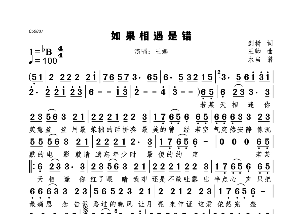 《如果相遇是错》是王娜演唱的一首歌曲,这份简谱共有一张高清图谱,图谱由 @水当 编配上传。