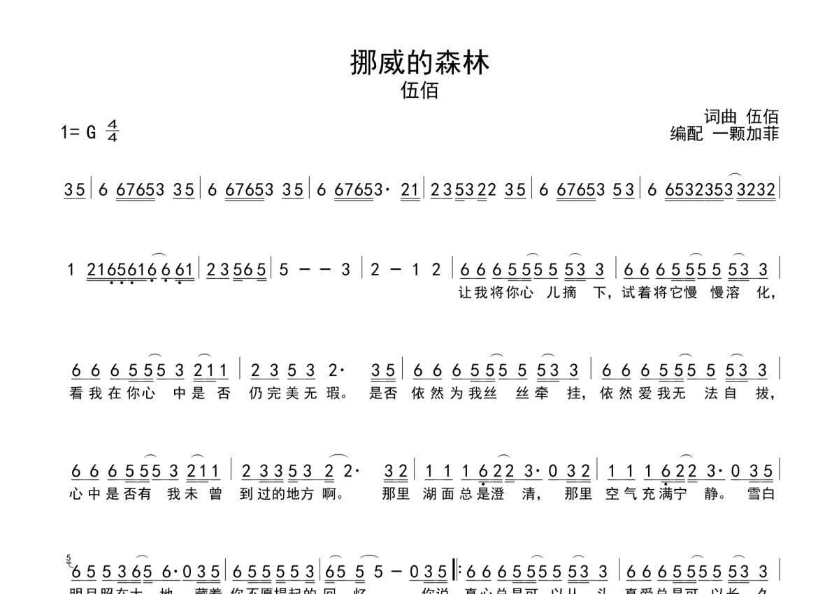 《挪威的森林》是伍佰演唱的一首歌曲,这份简谱共有两张高清图谱,图谱由 @一颗加菲 编配上传。