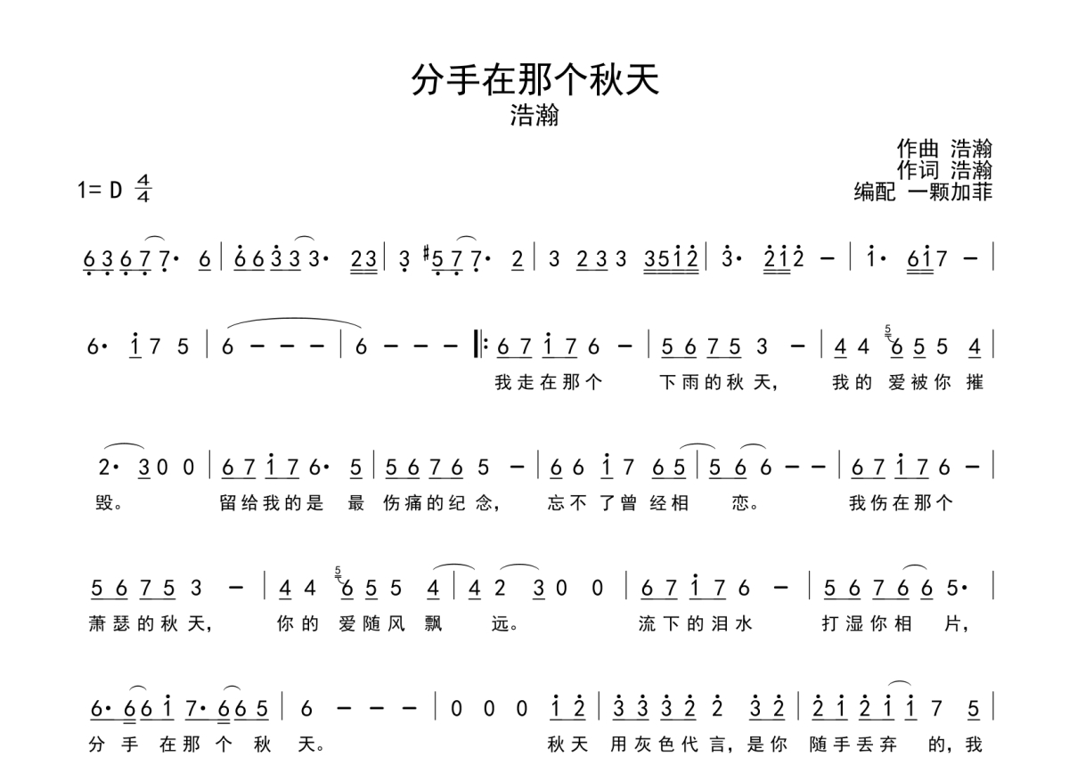 分手在那个秋天简谱 - 浩瀚演唱