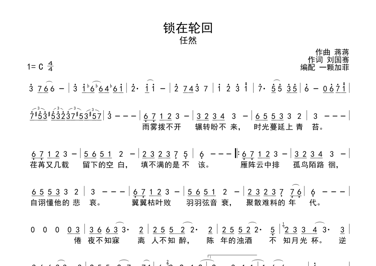 《锁在轮回》是任然演唱的一首歌曲,这份简谱共有一张高清图谱,图谱由 @一颗加菲 编配上传。