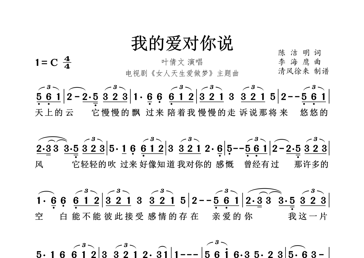 《我的爱对你说》是叶倩文演唱的一首歌曲,这份简谱共有一张高清图谱,图谱由 @秋天的童话 编配上传。