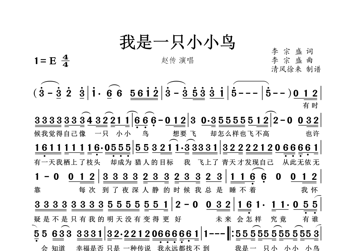 《我是一只小小鸟》简谱 - 赵传
