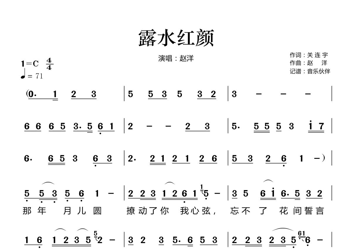 露水红颜简谱 - 赵洋演唱
