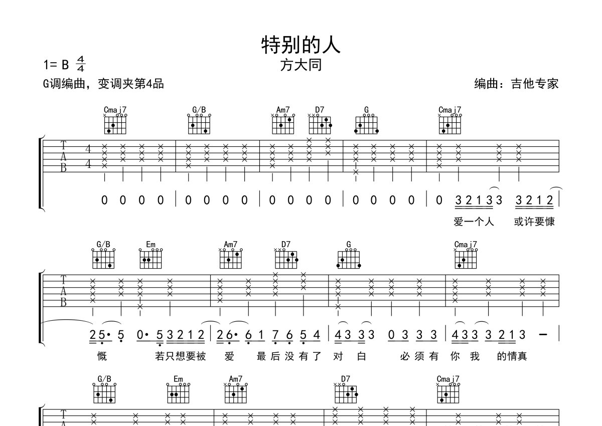 方大同《特别的人》吉他谱 - G调弹唱六线谱