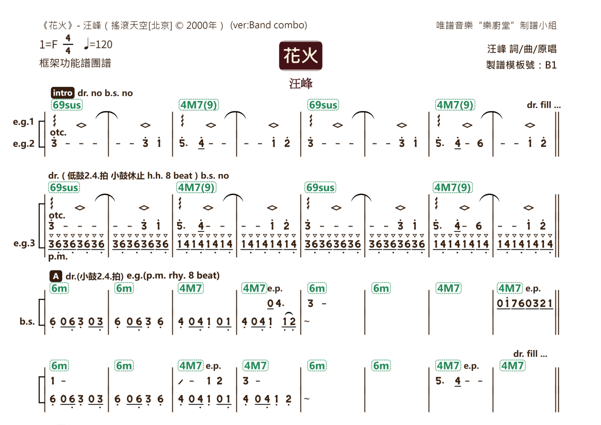 汪峰《花火》乐队总谱 - 框架功能谱团谱
