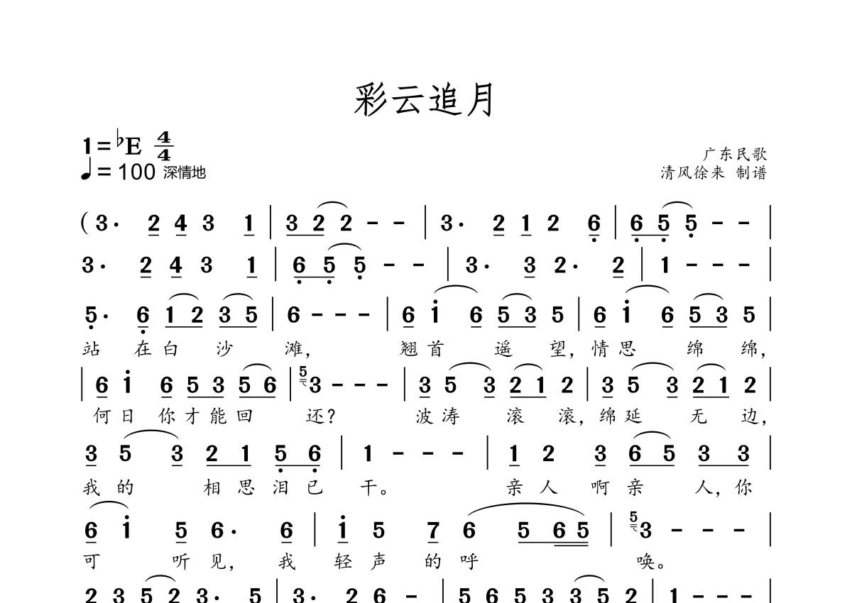 彩云追月简谱 - 雷婷演唱