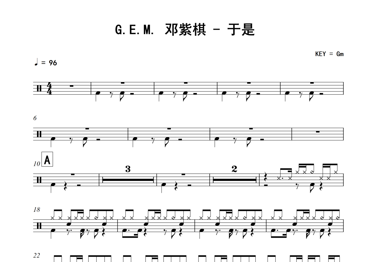G.E.M. 邓紫棋《于是》架子鼓谱