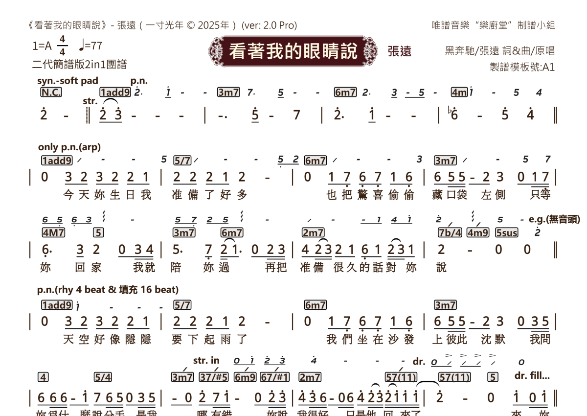 张远《看着我的眼睛说》乐队总谱 - 2.0版多功能团谱