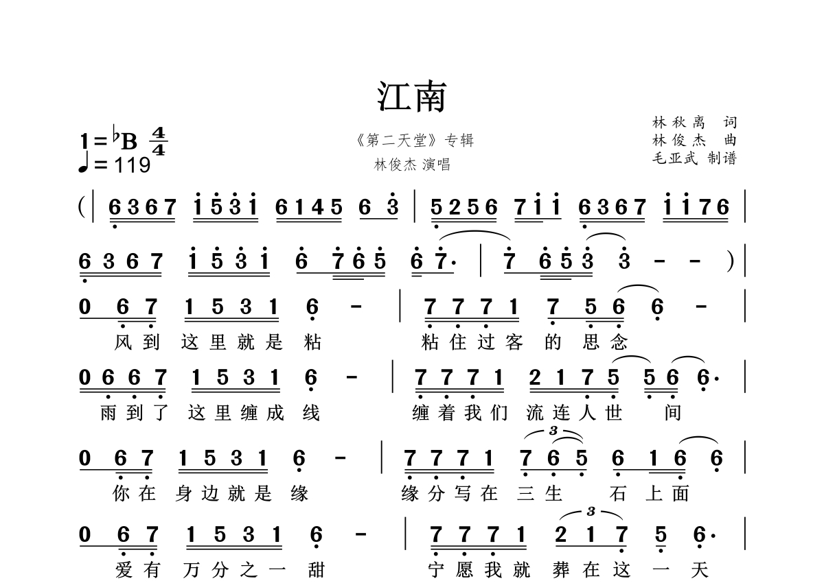 江南简谱 - 林俊杰演唱