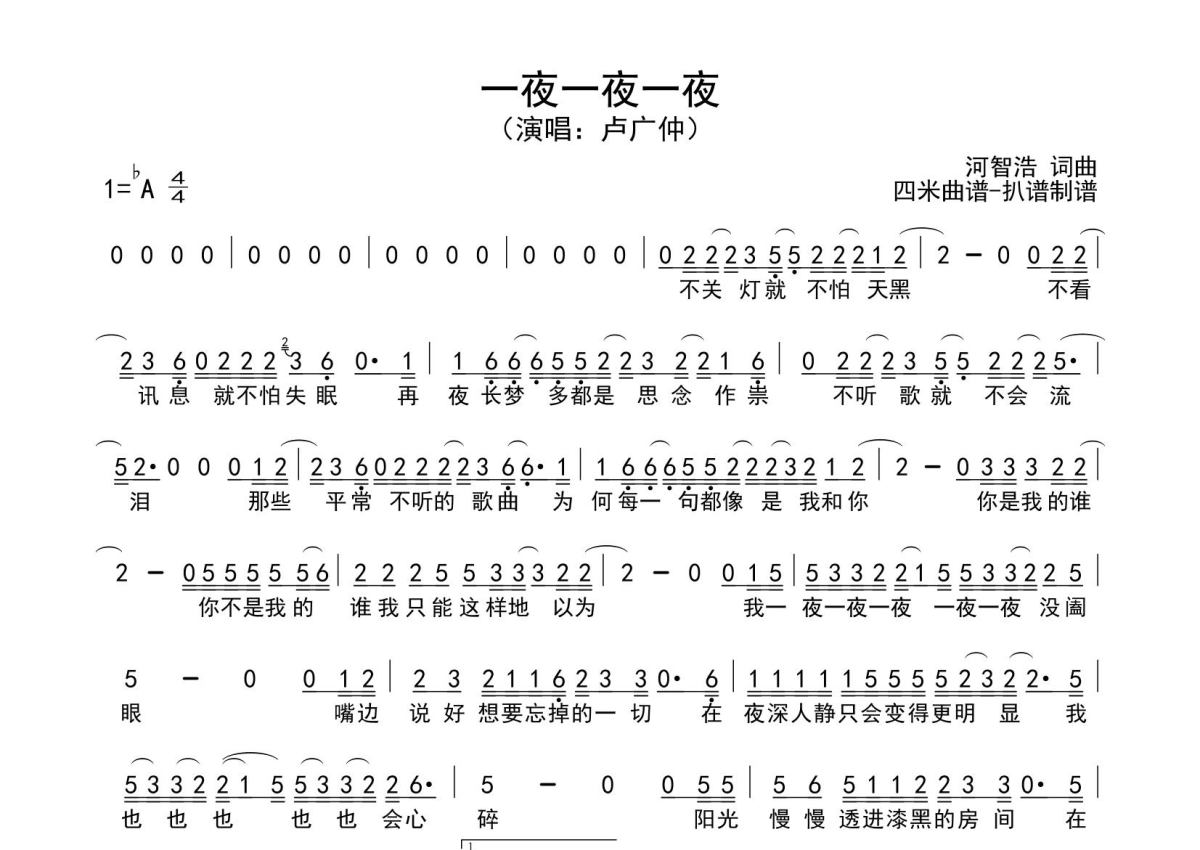 一夜一夜一夜简谱 - 卢广仲演唱