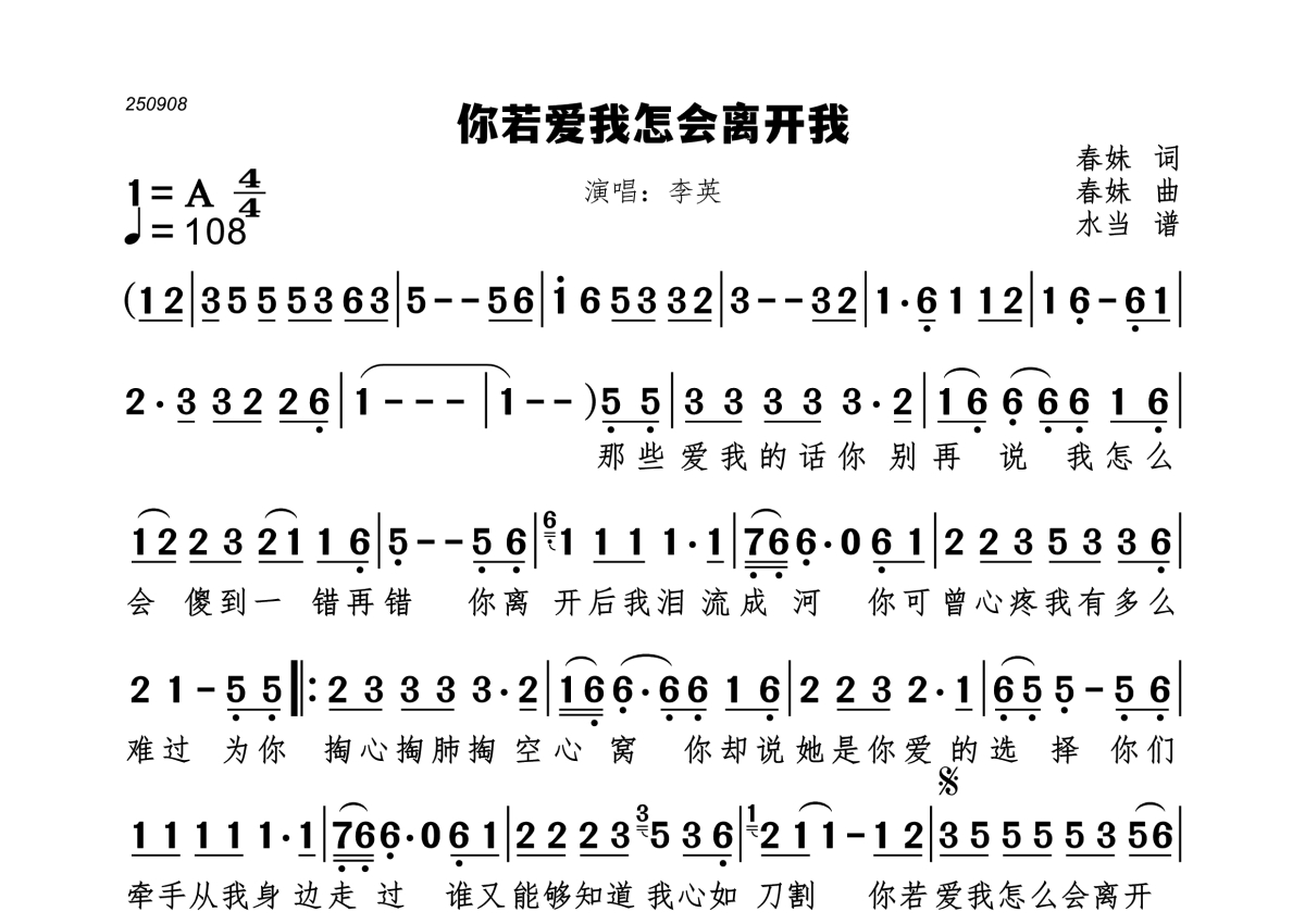 你若爱我怎会离开我简谱 - 李英演唱