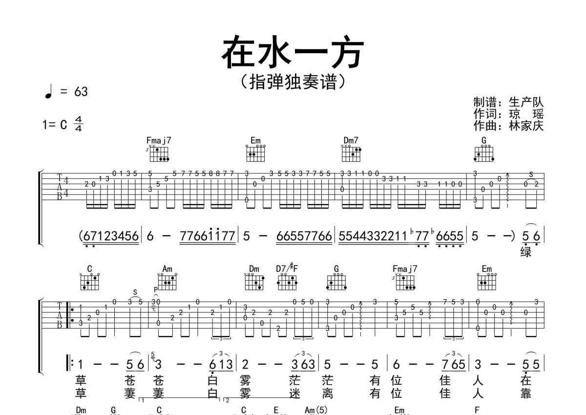 《在水一方(指弹谱)》是指弹谱演唱的一首歌曲,指弹独奏谱,拍号为4/4拍,歌曲速度为每分钟63拍,歌曲原调为C调,本吉他谱采用的是C调指法编配,演奏时不需要使用变调夹即为原调,这份吉他谱共有两张高清图谱,图谱由 @生产队 编配上传,图谱使用六线谱编配,使用这份在水一方(指弹谱)吉他谱,可以让你更加方便地掌握这首歌曲的演奏技巧,快来尝试吧。邓丽君演唱的经典歌曲《在水一方》指弹独奏谱,怀旧经典,吉他必弹曲目,值得推荐!。