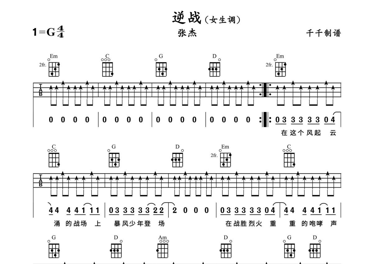 张杰《逆战》尤克里里谱 - G调尤克里里谱