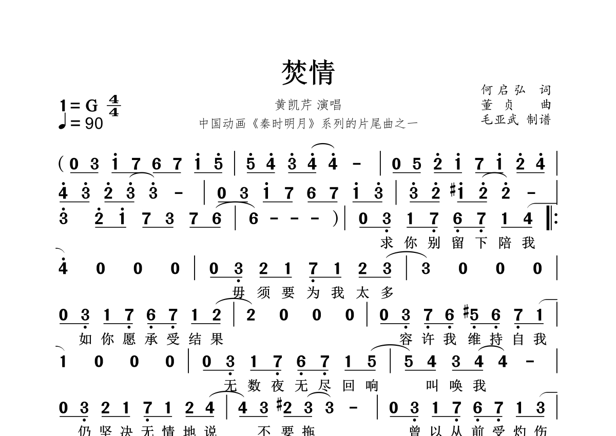 焚情简谱 - 黄凯芹演唱