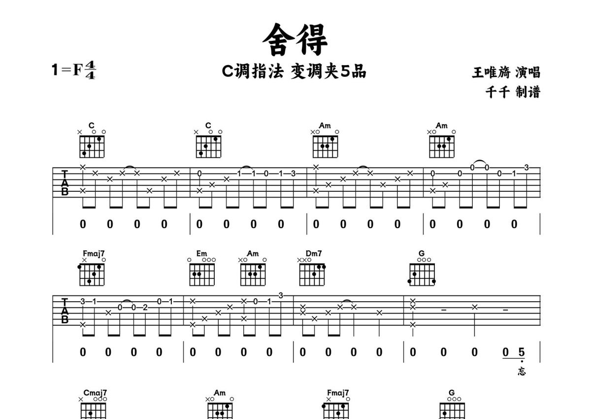 舍得吉他谱 - 王唯旖千千编配