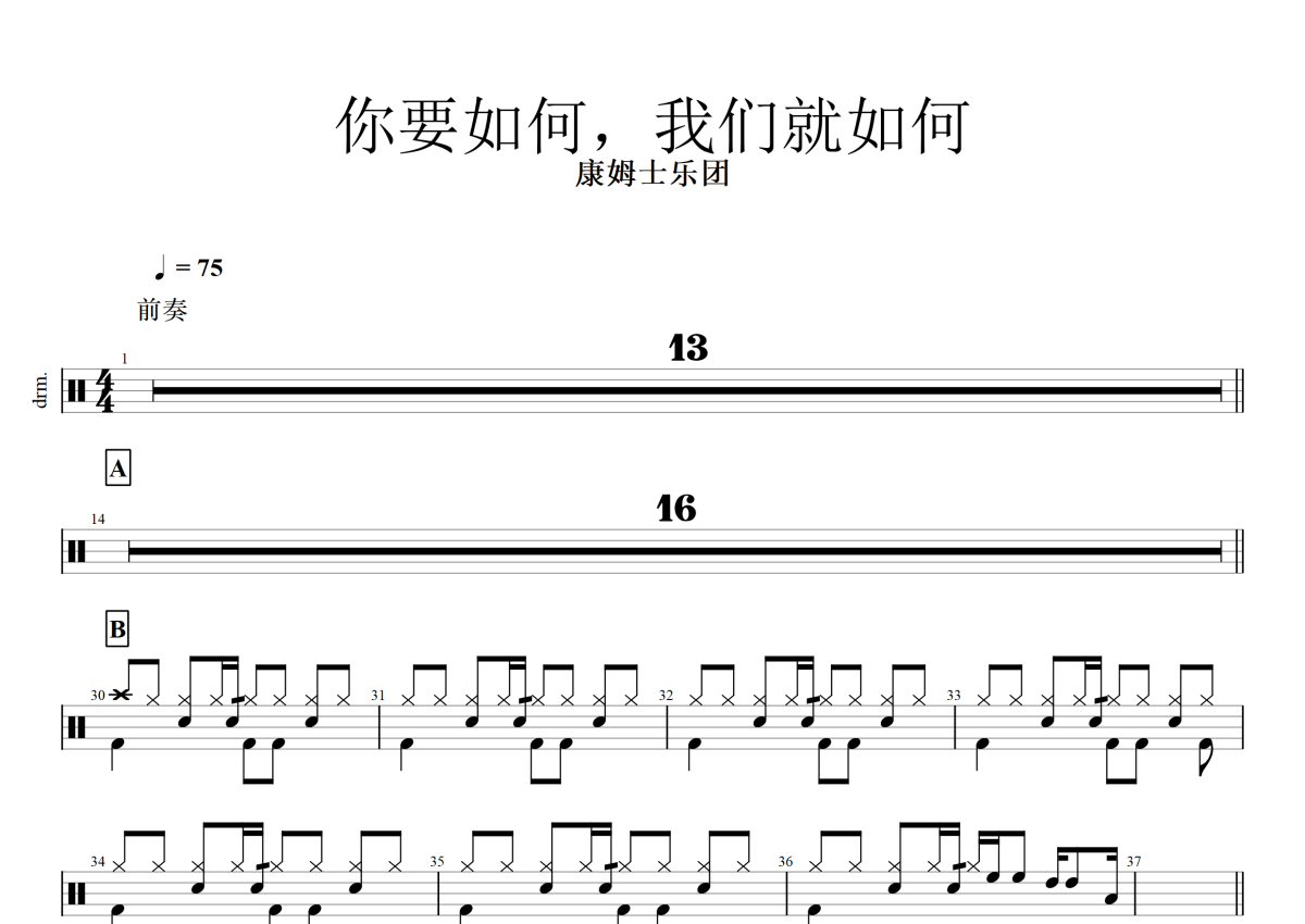 康姆士乐团《你要如何,我们就如何》架子鼓谱