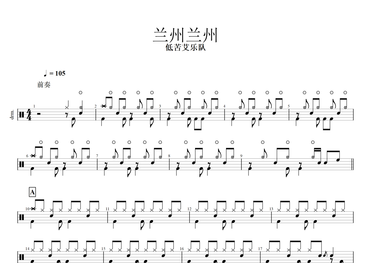 兰州兰州架子鼓谱 - 低苦艾乐队演唱