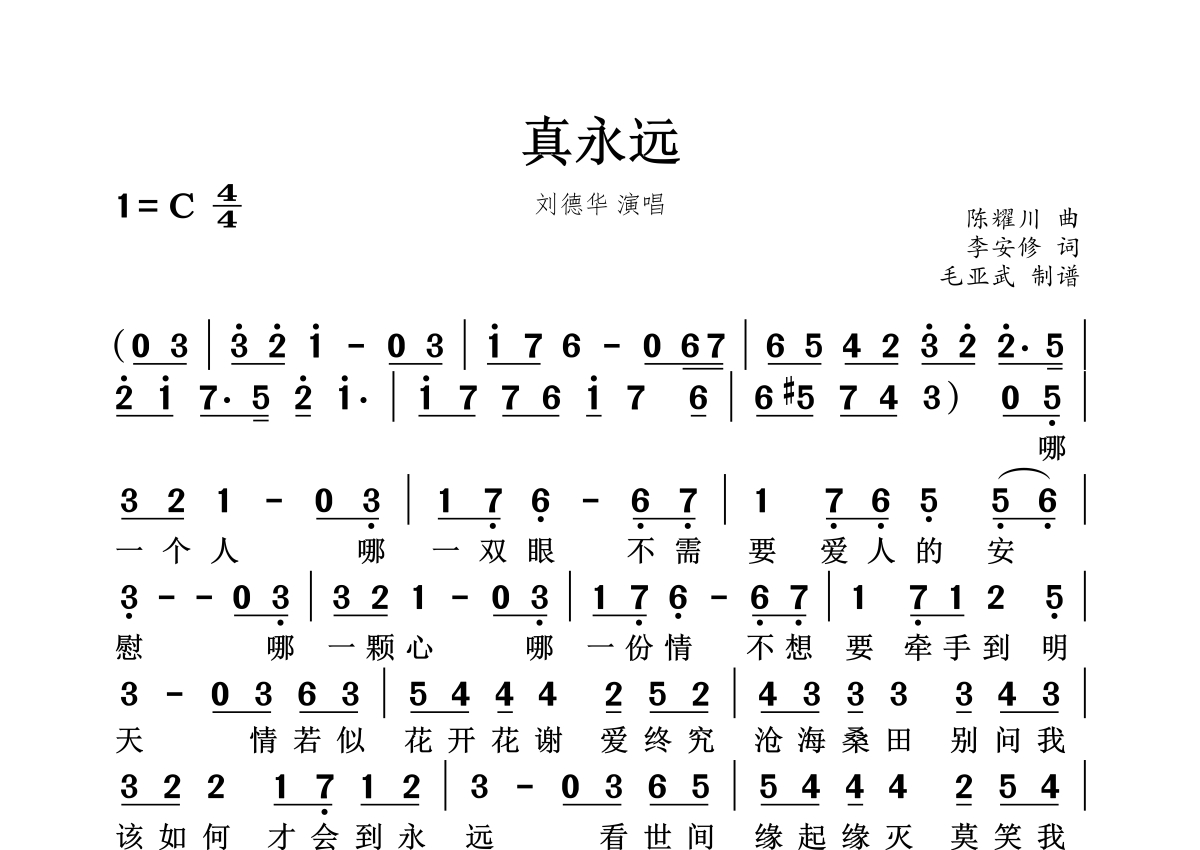 真永远简谱 - 刘德华演唱
