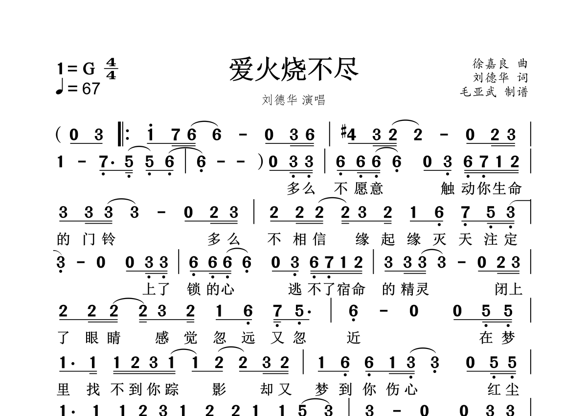 爱火烧不尽简谱 - 刘德华演唱
