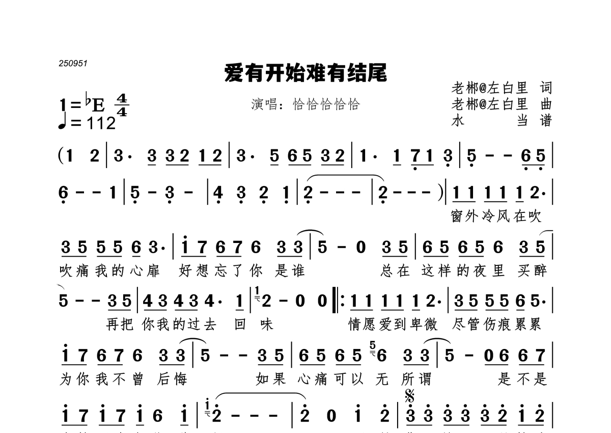 《爱有开始难有结尾》是恰恰恰恰恰演唱的一首歌曲,这份简谱共有一张高清图谱,图谱由 @水当 编配上传。
