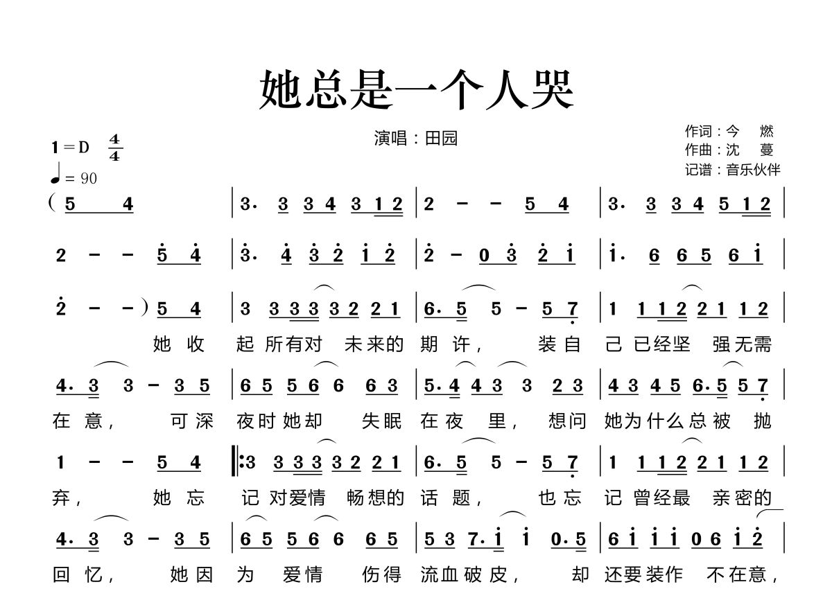 她总是一个人哭简谱 - 田园演唱