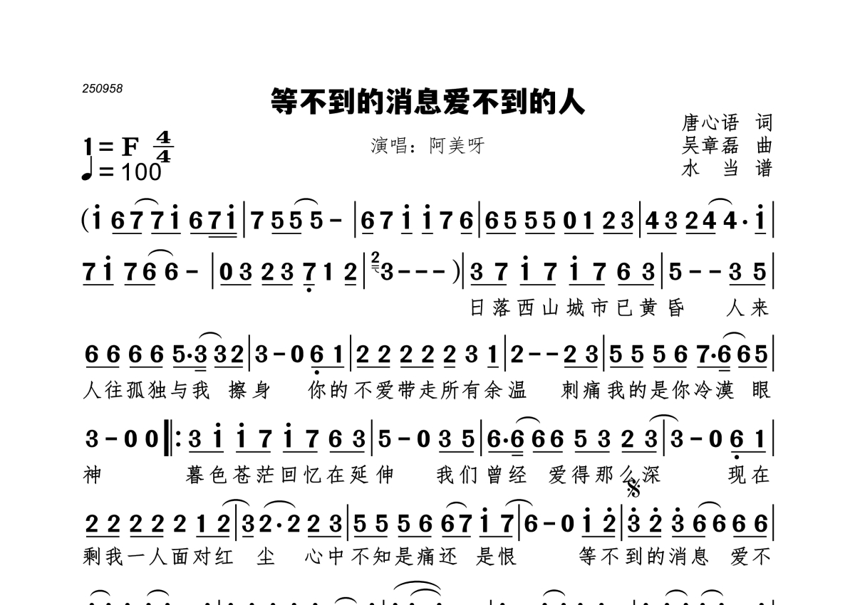 等不到的消息爱不到的人简谱 - 阿美呀演唱