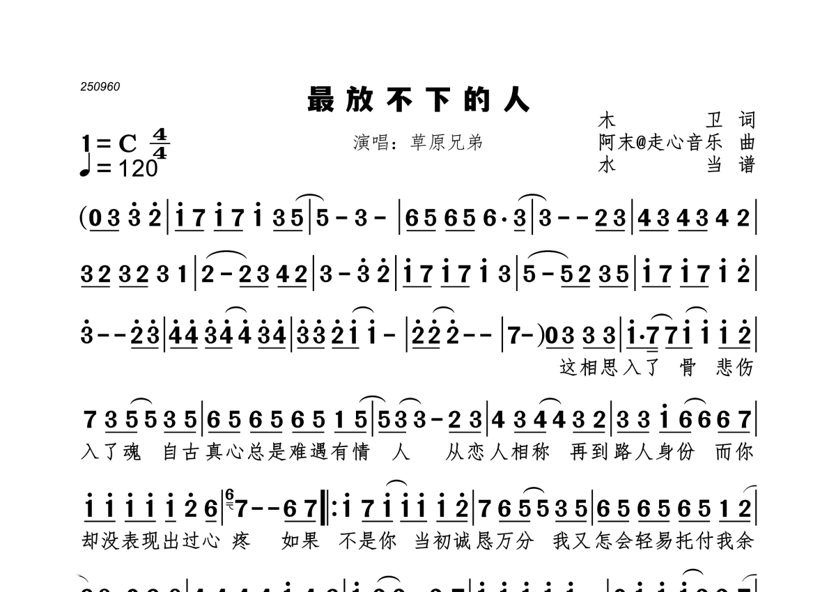 最放不下的人简谱 - 草原兄弟演唱
