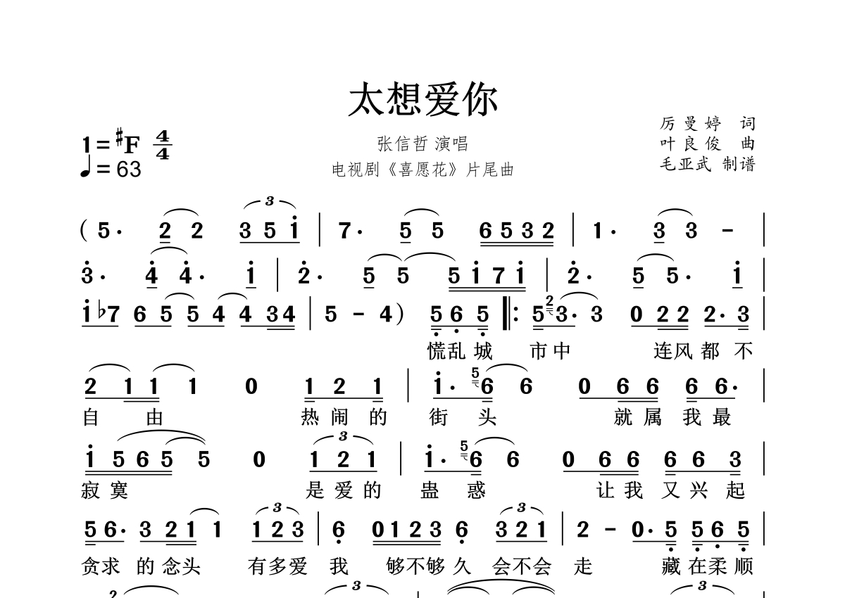 《太想爱你》简谱 - 张信哲